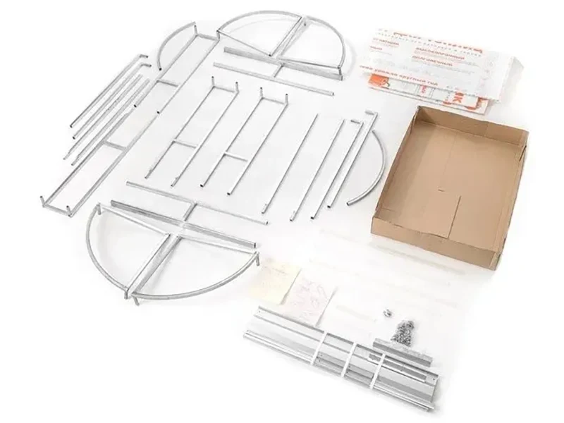 Каркас парника выполнен из оцинкованной трубы с размером 20*20 мм, что обеспечивает прочность и долговечность конструкции. Поликарбонатные стенки сделаны из 14 выкроенных деталей, что обеспечивает хорошую защиту от внешних условий.